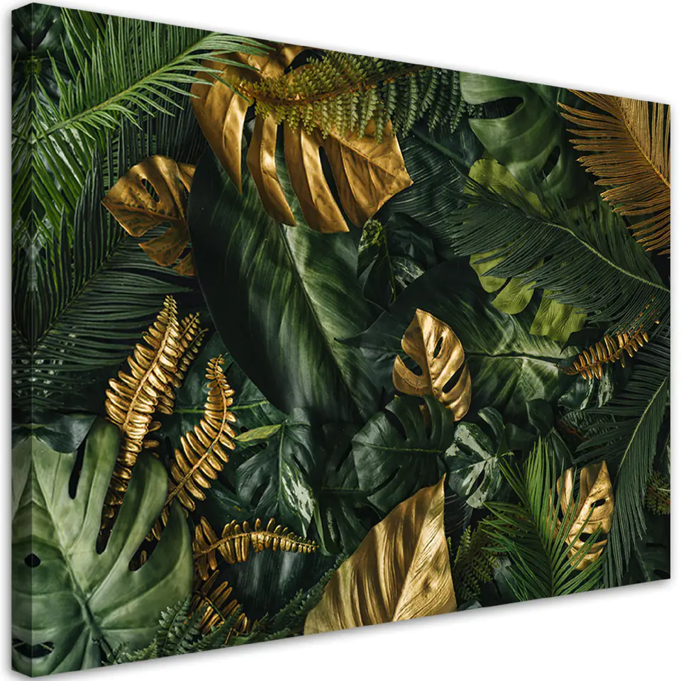 Obraz na płótnie, Złote liście tropikalne Rozmiar 90x60