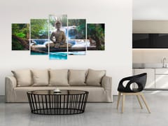 Obraz na szkle akrylowym "Obraz na szkle akrylowym - Budda i wodospad" to świetny pomysł na wystrój nowoczesnych wnętrz. Doskonale pasuje do oryginalnych rozwiązań i stanowi interesującą alternatywę dla tradycyjnych dekoracji ściennych np. jako panele szklane czy szkło dekoracyjne do kuchni. Druk na szkle akrylowym przyciąga wzrok dzięki efektowi głębi i pięknie wygląda w pokojach reprezentacyjnych. Dzięki zastosowaniu nowoczesnych technologii druku i wysokiej jakości barwników, charakteryzuje się pięknym połyskiem. Obrazy na szkle akrylowym są lekkie, łatwe w czyszczeniu i odporne na działanie wilgoci, dzięki czemu świetnie sprawdzą się zarówno w salonie, sypialni, łazience, a nawet na tarasie. Szkło akrylowe z grafiką dzięki przepuszczalności światła zyskuje niesamowity efekt 3d. Obrazy na szkle akrylowym zachowują wszystkie zalety klasycznego druku na szkle, z pominięciem jego słabych stron – ciężkości i delikatności. Tworzy się je z wyjątkowo cenionego w architekturze wnętrz materiału, polimetakrylanu metylu. Polimer zwany potocznie szkłem akrylowym lub pleksi, jest (podobnie jak szkło) bezbarwny i sztywny. Tak jak szkło nie odbarwia się pod wpływem promieniowania UV i cechuje się bardzo wysoką (ponad 90%) przepuszczalnością światła. W odróżnieniu od szkła jest o połowę lżejszy i zdecydowanie bardziej wytrzymały. Jest bardziej elastyczny i ciężko go skruszyć. W przypadku obrazów na szkle akrylowym druk umieszczany jest jako foliowa okleina. Technika ta zapewnia fotograficzną dokładność i nasycone barwy. Obraz na pleksi gwarantuje trójwymiarową głębię i delikatny połysk. Druk na akrylu to świetna propozycja dla lubiących praktyczne rozwiązania.