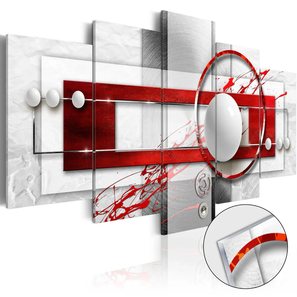 Obraz na szkle akrylowym "Obraz na szkle akrylowym - Karmazynowa energia" to świetny pomysł na wystrój nowoczesnych wnętrz. Doskonale pasuje do oryginalnych rozwiązań i stanowi interesującą alternatywę dla tradycyjnych dekoracji ściennych np. jako panele szklane czy szkło dekoracyjne do kuchni. Druk na szkle akrylowym przyciąga wzrok dzięki efektowi głębi i pięknie wygląda w pokojach reprezentacyjnych. Dzięki zastosowaniu nowoczesnych technologii druku i wysokiej jakości barwników, charakteryzuje się pięknym połyskiem. Obrazy na szkle akrylowym są lekkie, łatwe w czyszczeniu i odporne na działanie wilgoci, dzięki czemu świetnie sprawdzą się zarówno w salonie, sypialni, łazience, a nawet na tarasie. Szkło akrylowe z grafiką dzięki przepuszczalności światła zyskuje niesamowity efekt 3d. Obrazy na szkle akrylowym zachowują wszystkie zalety klasycznego druku na szkle, z pominięciem jego słabych stron – ciężkości i delikatności. Tworzy się je z wyjątkowo cenionego w architekturze wnętrz materiału, polimetakrylanu metylu. Polimer zwany potocznie szkłem akrylowym lub pleksi, jest (podobnie jak szkło) bezbarwny i sztywny. Tak jak szkło nie odbarwia się pod wpływem promieniowania UV i cechuje się bardzo wysoką (ponad 90%) przepuszczalnością światła. W odróżnieniu od szkła jest o połowę lżejszy i zdecydowanie bardziej wytrzymały. Jest bardziej elastyczny i ciężko go skruszyć. W przypadku obrazów na szkle akrylowym druk umieszczany jest jako foliowa okleina. Technika ta zapewnia fotograficzną dokładność i nasycone barwy. Obraz na pleksi gwarantuje trójwymiarową głębię i delikatny połysk. Druk na akrylu to świetna propozycja dla lubiących praktyczne rozwiązania.