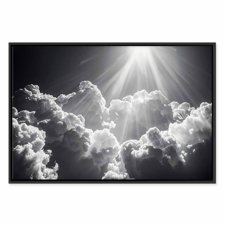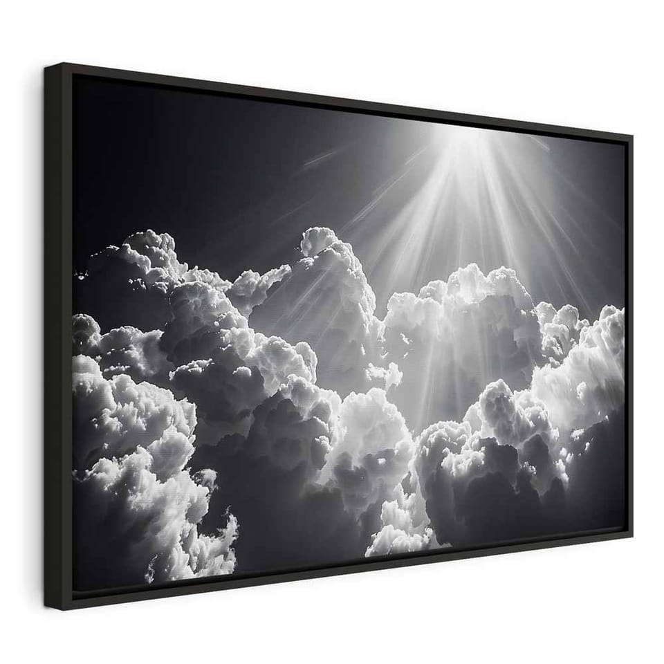 Obraz - Nadzieja w chmurach: Inspirujące promienie słońca – przebudź emocje rozmiar 120x80, wykończenie W ramie drewnianej czarnej