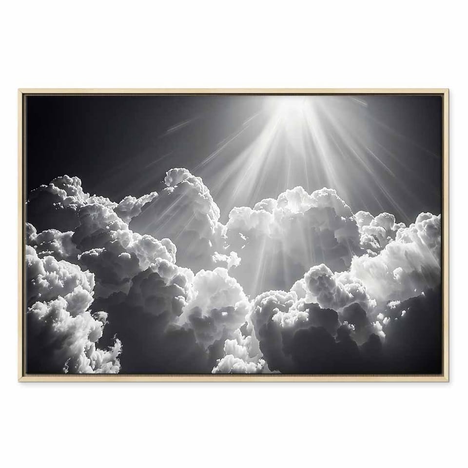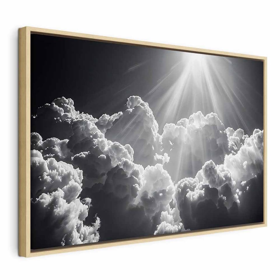 Obraz - Nadzieja w chmurach: Inspirujące promienie słońca – przebudź emocje rozmiar 90x60, wykończenie W ramie drewnianej naturalnej