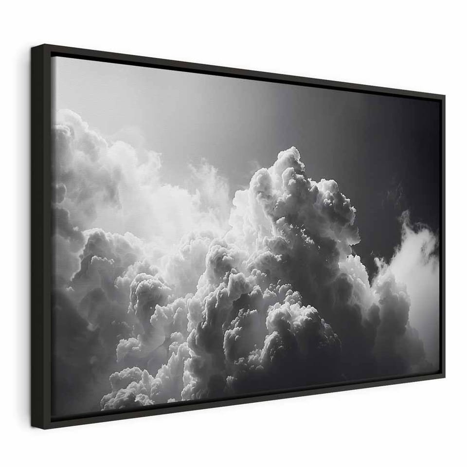 Obraz - Nadzwyczajne zjawisko: Słońce rozświetlające ciemne chmury rozmiar 90x60, wykończenie W ramie drewnianej czarnej