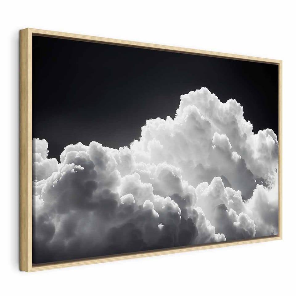Obraz - Odkryj nieskończoną grę słonecznego światła – chmury i cienie na niebie. rozmiar 120x80, wykończenie W ramie drewnianej naturalnej