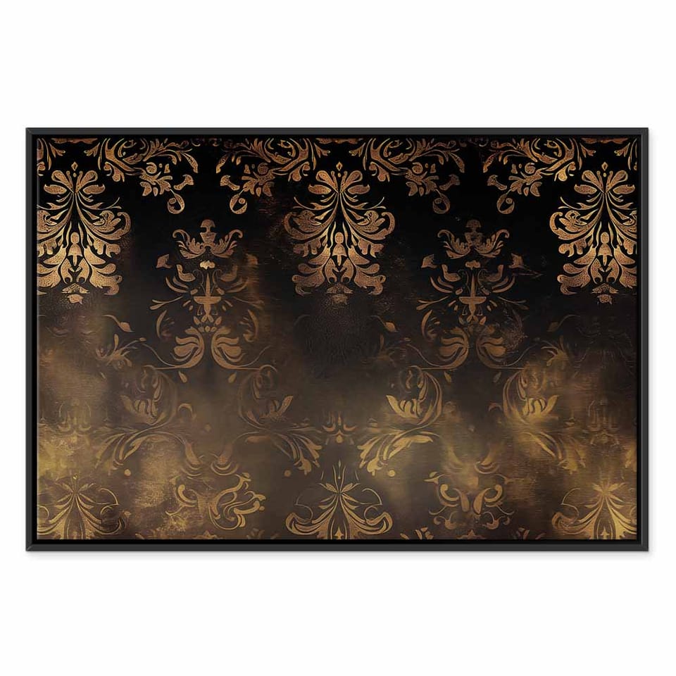 Obraz - Ornamenty barokowe w spatynowanym złocie i w brązach: retro motyw rozmiar 60x40, wykończenie W ramie drewnianej czarnej