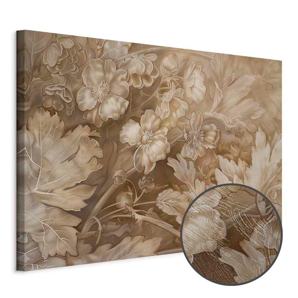 Obraz - Ornamenty kwiatowe rzeźbione w delikatnych odcieniach sepii i brązu rozmiar 120x80, wykończenie Premium Print