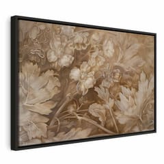 Obraz - Ornamenty kwiatowe rzeźbione w delikatnych odcieniach sepii i brązu rozmiar 120x80, wykończenie W ramie drewnianej czarnej