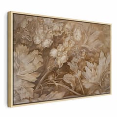Obraz - Ornamenty kwiatowe rzeźbione w delikatnych odcieniach sepii i brązu rozmiar 90x60, wykończenie W ramie drewnianej naturalnej