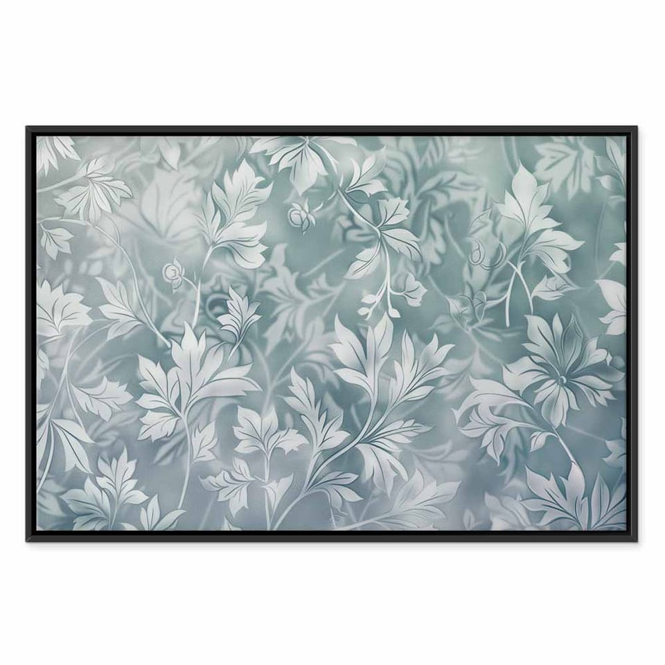 Obraz - Ornamenty w przetartych zgaszonych turkusach: delikatny wzór roślinny rozmiar 120x80, wykończenie W ramie drewnianej czarnej