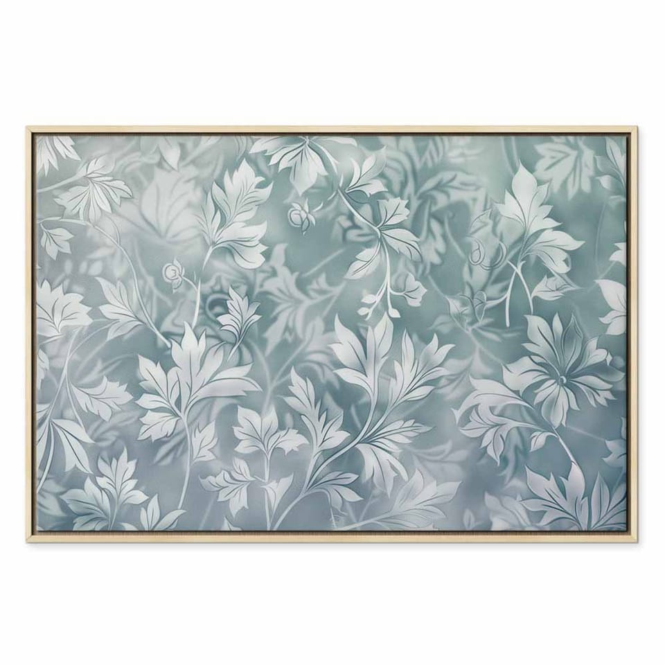 Obraz - Ornamenty w przetartych zgaszonych turkusach: delikatny wzór roślinny rozmiar 120x80, wykończenie W ramie drewnianej naturalnej