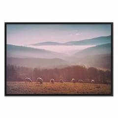 Obraz - Owce na tle górskiego krajobrazu (1-częściowy) - zwierzęta w naturze rozmiar 120x80, wykończenie W ramie drewnianej czarnej