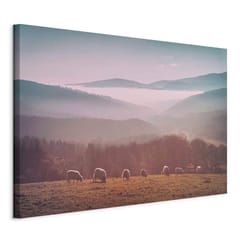 Obraz - Owce na tle górskiego krajobrazu (1-częściowy) - zwierzęta w naturze rozmiar 60x40, wykończenie Na płótnie włoskim