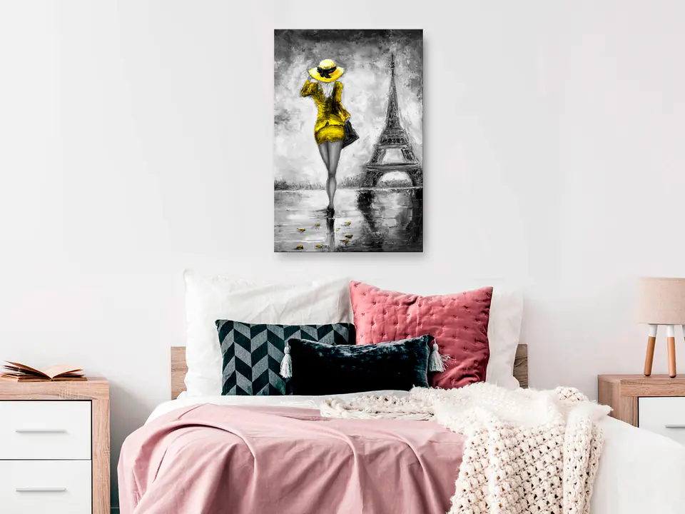 Obraz - Paryska kobieta (1-częściowy) pionowy żółty rozmiar 20x30, wykończenie Premium Print