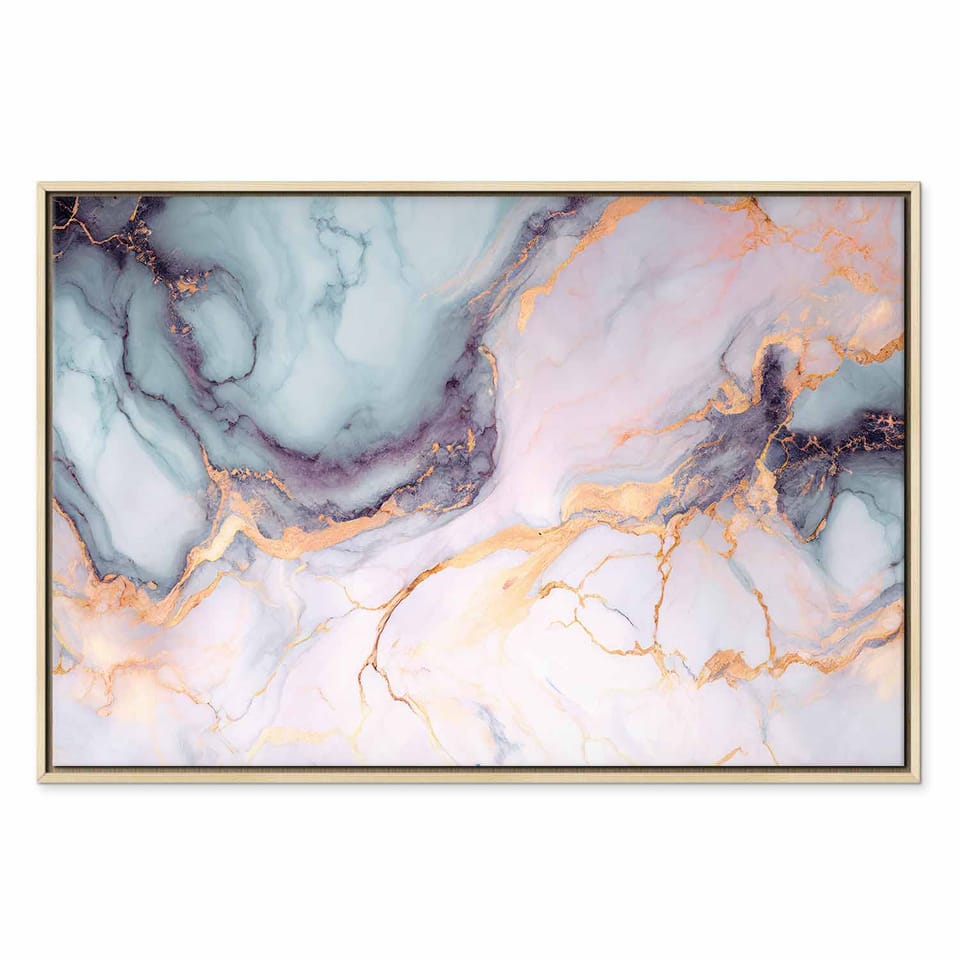 Obraz - Pastelowe kamienie - różowo-niebieskie struktury na bazie marmuru rozmiar 90x60, wykończenie W ramie drewnianej naturalnej
