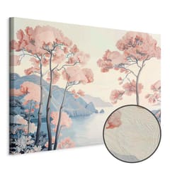 Obraz - Pejzaż z oceanem klifami i drzewami w delikatnych różowych barwach rozmiar 120x80, wykończenie Premium Print