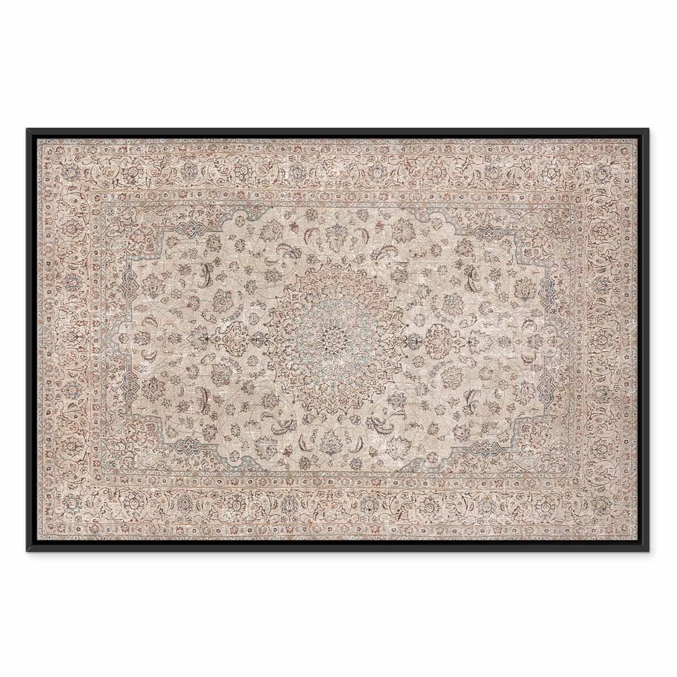 Obraz - Piaskowy dywan - przetarty perski dywan z bogatymi motywami zdobniczymi rozmiar 60x40, wykończenie W ramie drewnianej czarnej