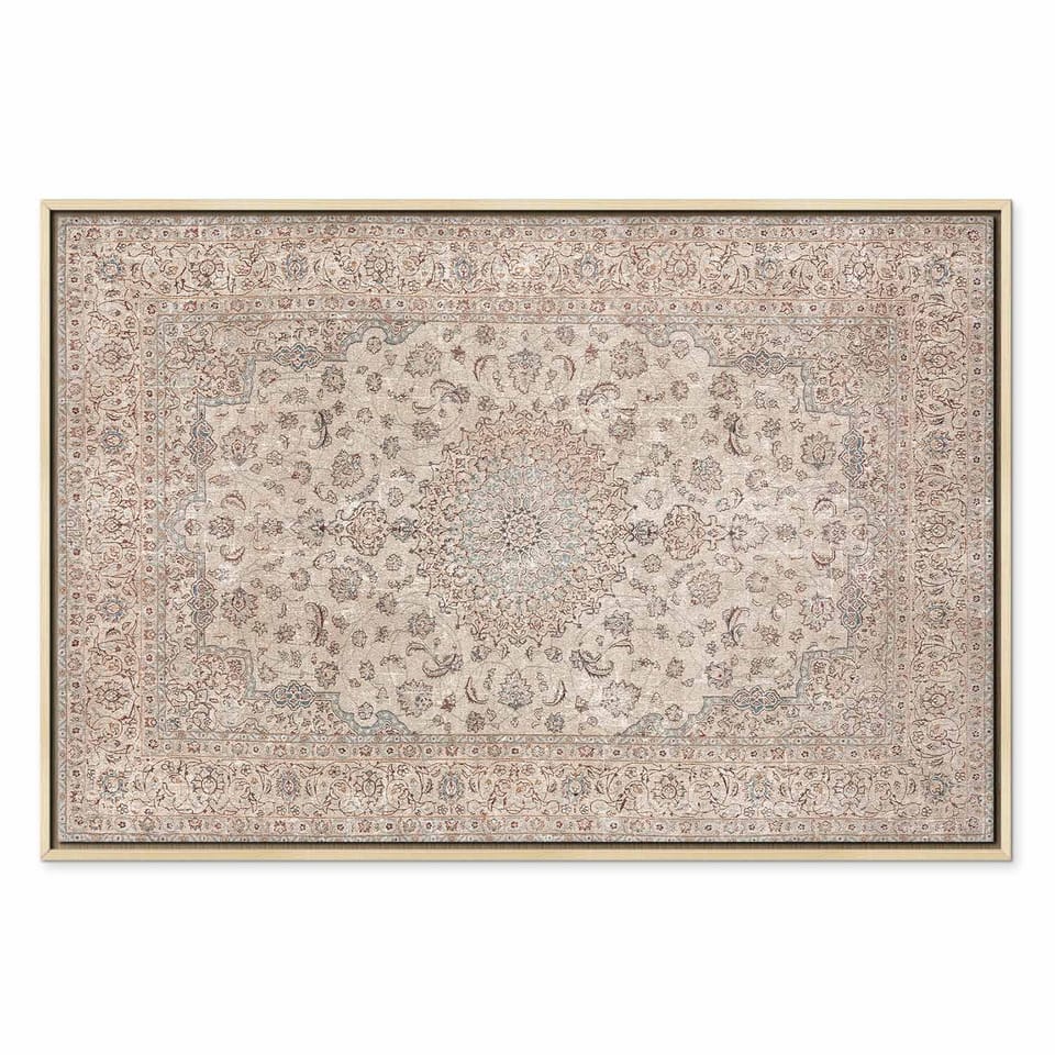 Obraz - Piaskowy dywan - przetarty perski dywan z bogatymi motywami zdobniczymi rozmiar 60x40, wykończenie W ramie drewnianej naturalnej