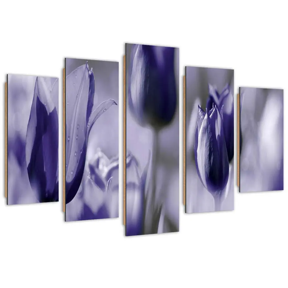 Obraz pięcioczęściowy Deco Panel, Fioletowe tulipany na łące Rozmiar 100x70