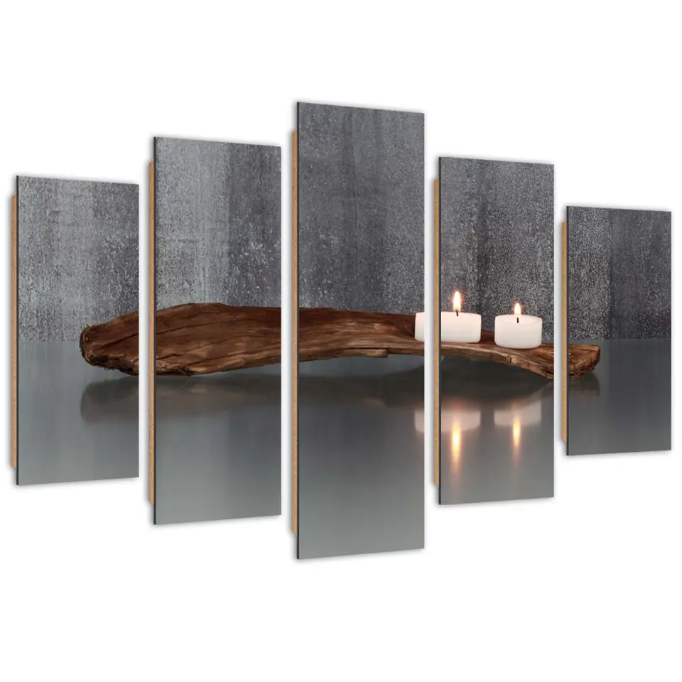 Obraz pięcioczęściowy Deco Panel, Kompozycja zen ze świecami i drewnem Rozmiar 200x100