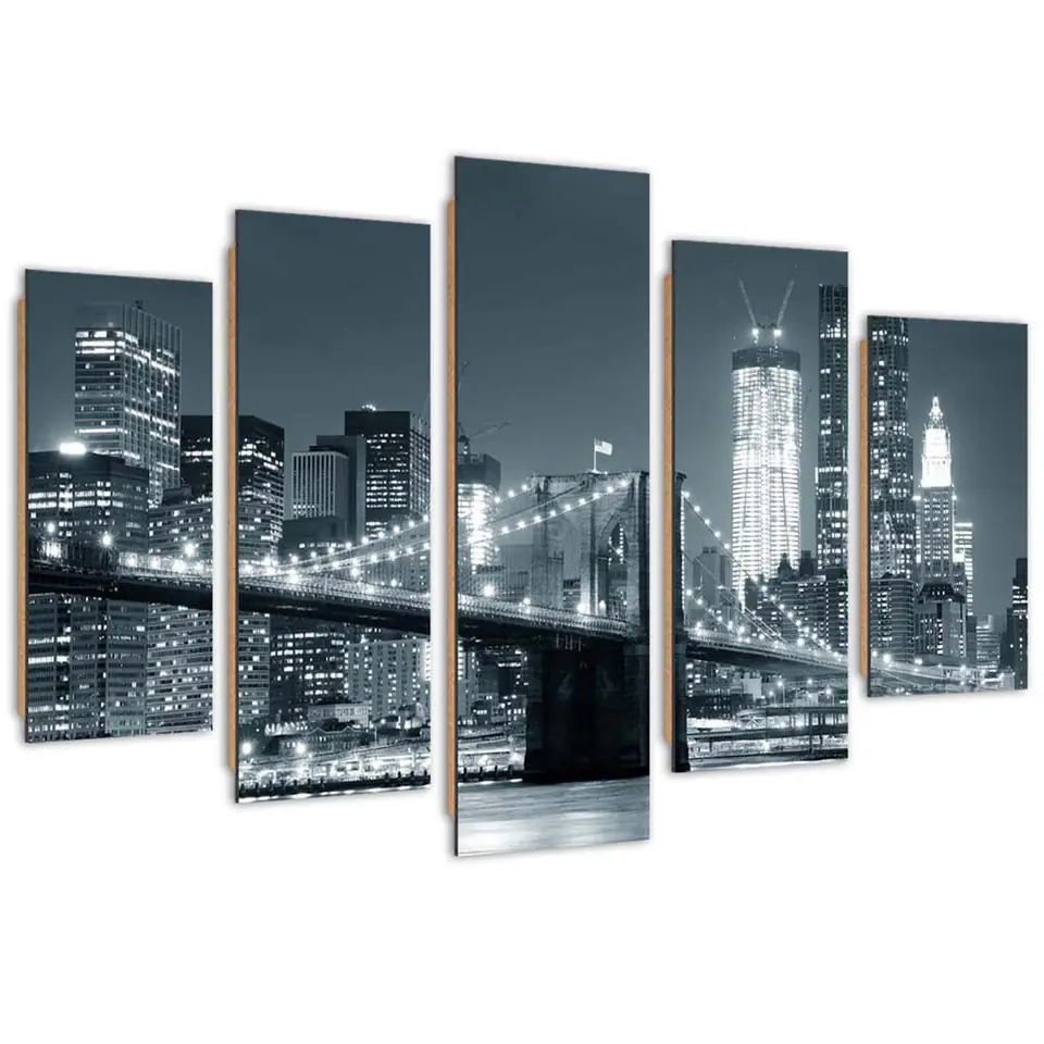 Obraz pięcioczęściowy Deco Panel, Most brookliński czarno-biały Rozmiar 150x100
