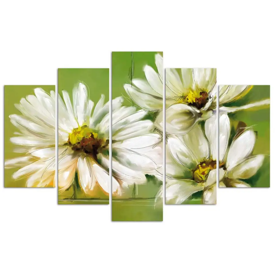 Obraz pięcioczęściowy na płótnie, Białe kwiaty (Rozmiar 150x100)
