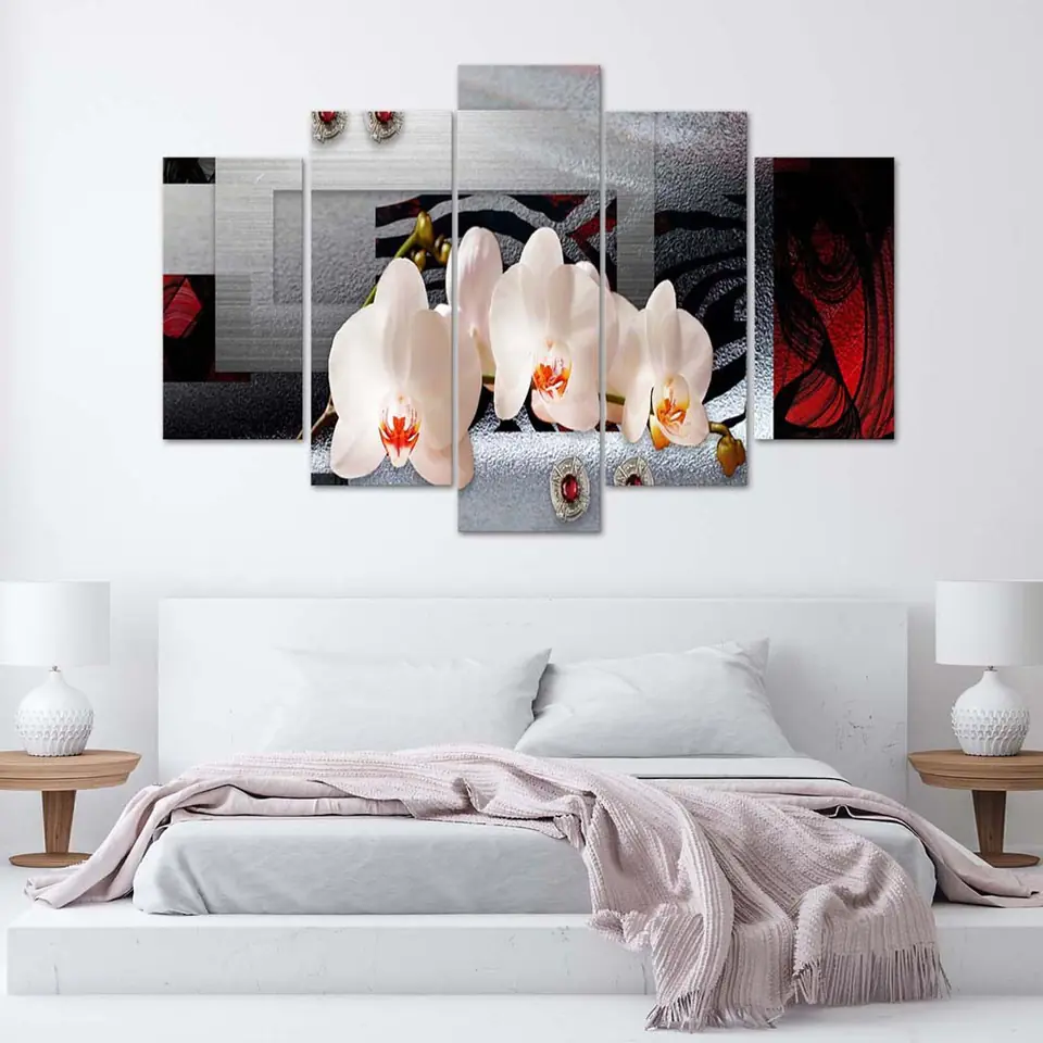 Obraz pięcioczęściowy na płótnie, Białe storczyki (Rozmiar 150x100)
