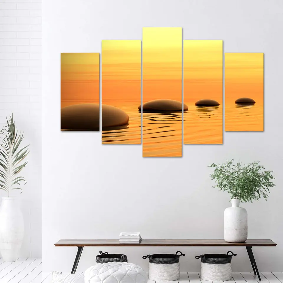 Obraz pięcioczęściowy na płótnie, Kompozycja zen z kamieniami (Rozmiar 150x100)
