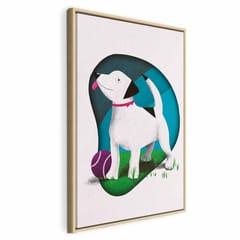 Obraz - Pies i piłka (1-częściowy) pionowy rozmiar 40x60, wykończenie W ramie drewnianej naturalnej