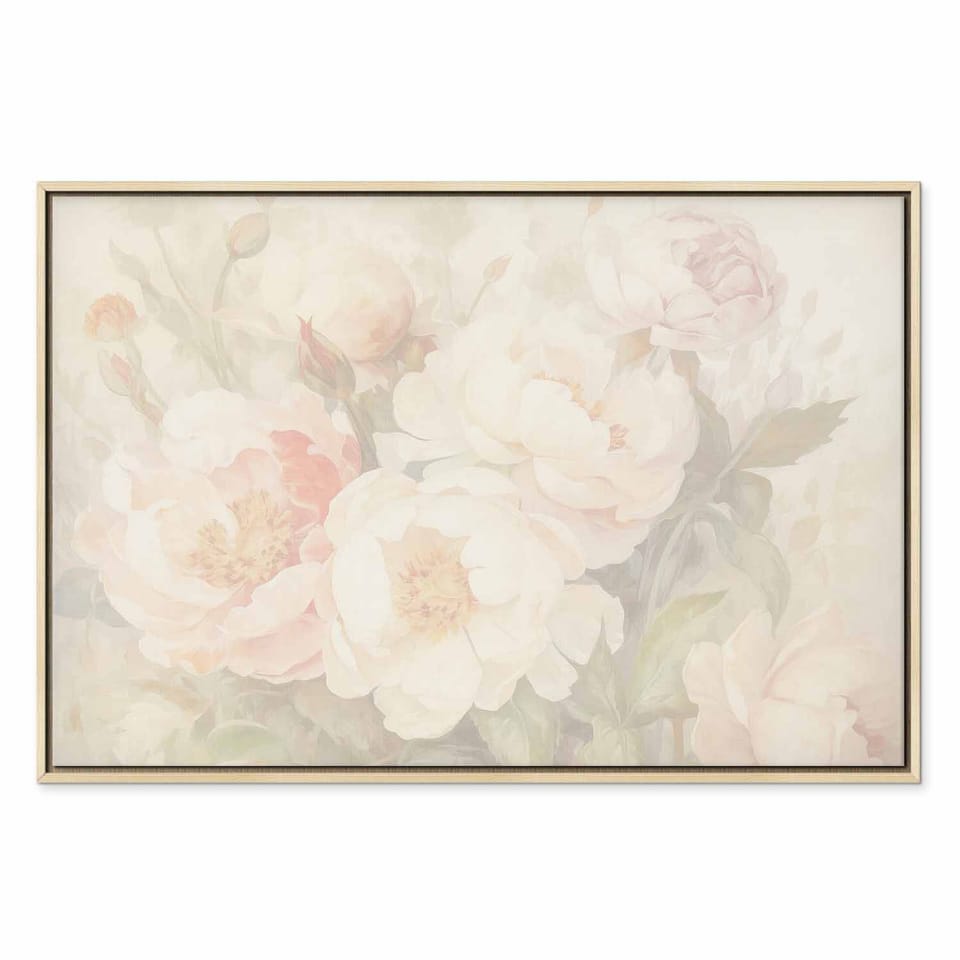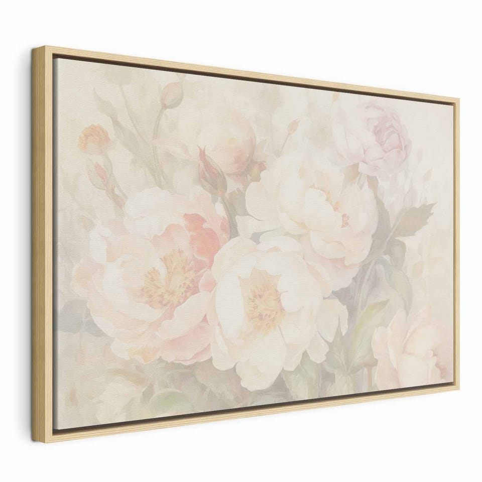 Obraz - Piwonie we mgle rozmiar 90x60, wykończenie W ramie drewnianej naturalnej