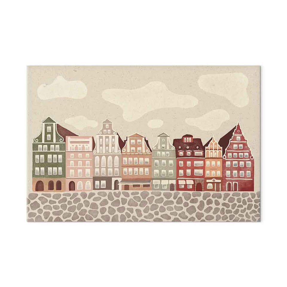 Obraz - Plac Solny - kolorowe ilustrowane kamieniczki na tle nieba z chmurami rozmiar 60x40, wykończenie Akustyczny