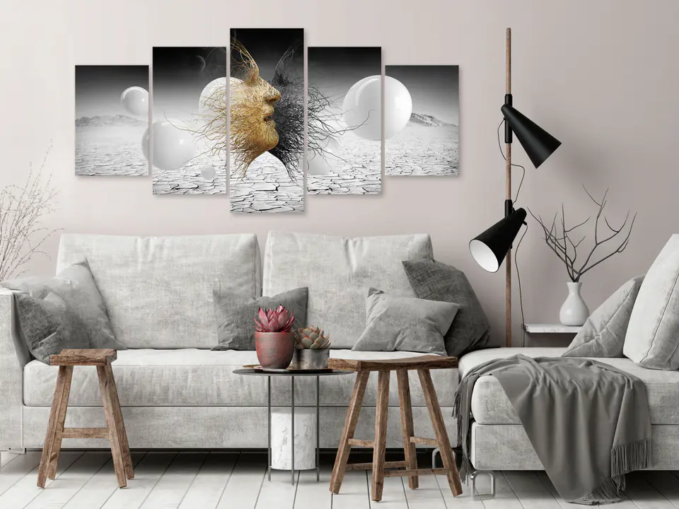 Obraz - Plecione twarze (5-częściowy) szeroki złoty rozmiar 225x112.5, wykończenie Na płótnie włoskim