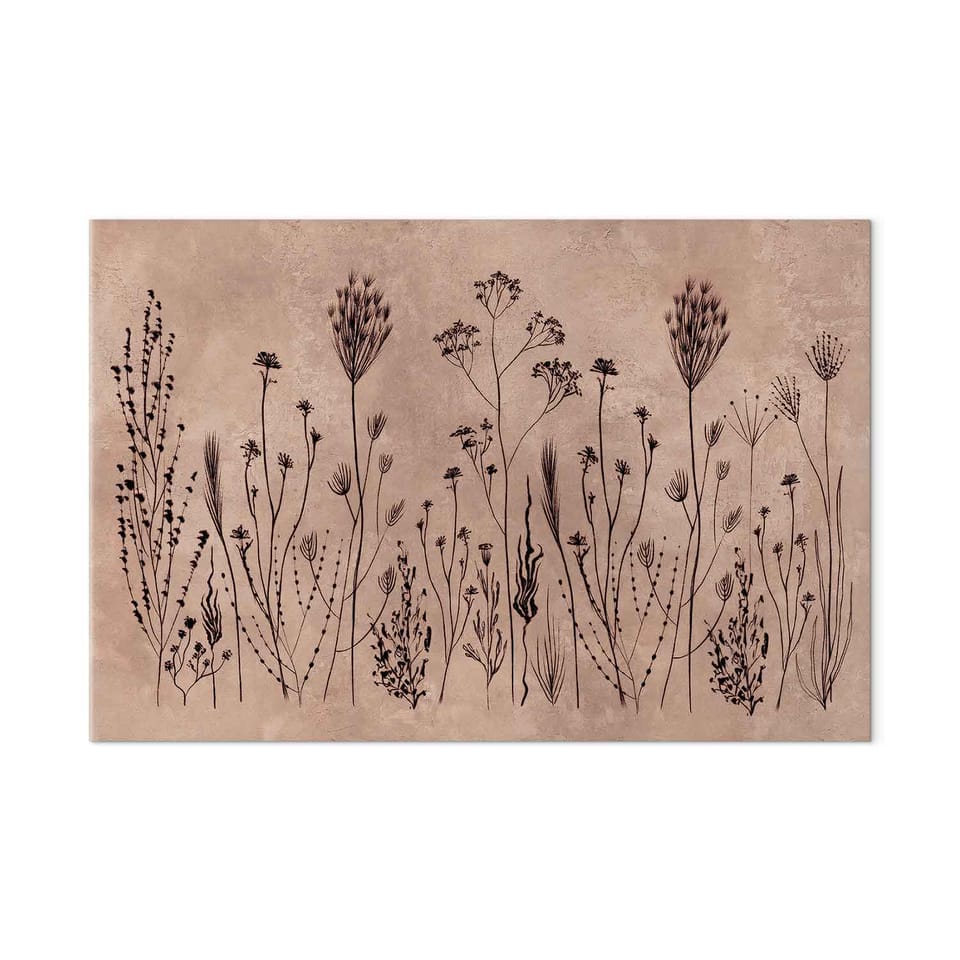 Obraz - Polne kwiaty - czarne rośliny na tle w technice lime wash rozmiar 120x80, wykończenie Standard
