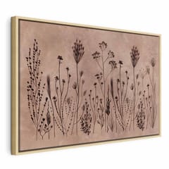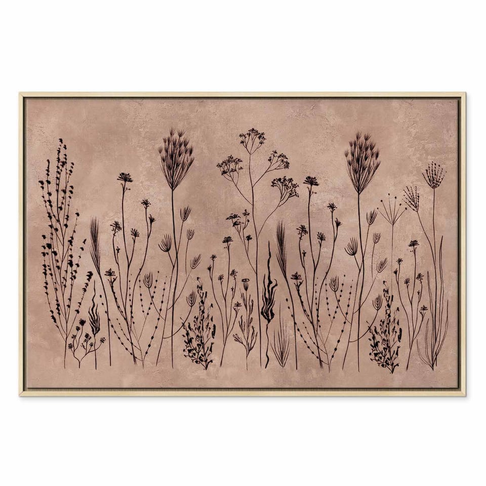 Obraz - Polne kwiaty - czarne rośliny na tle w technice lime wash rozmiar 60x40, wykończenie W ramie drewnianej naturalnej