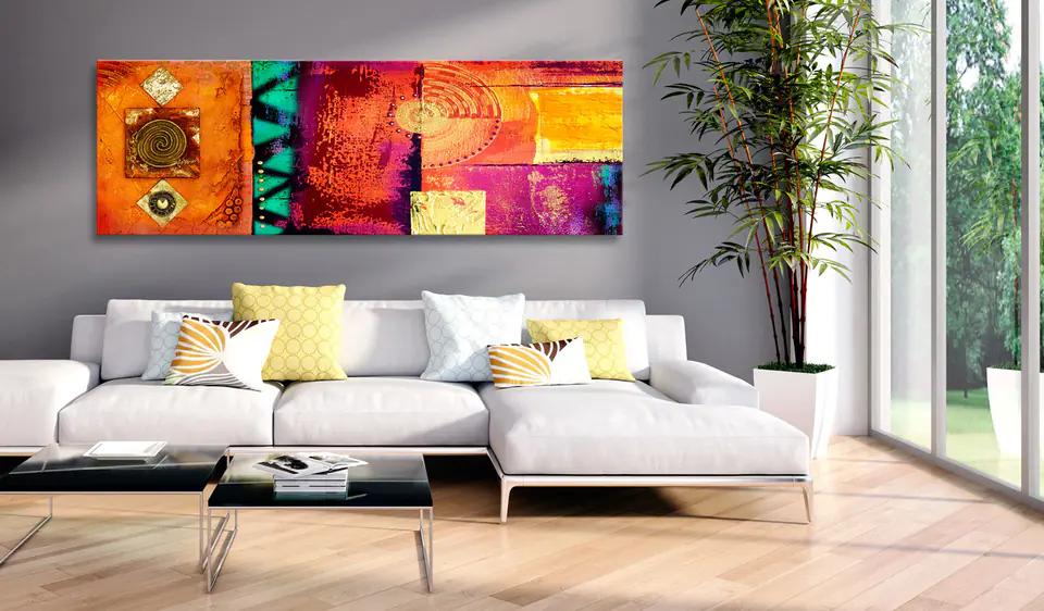 Obraz - Pomarańczowa abstrakcja rozmiar 120x40, wykończenie Na płótnie włoskim