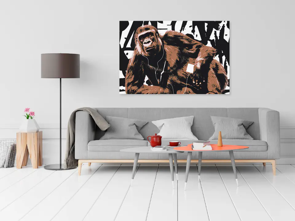 Obraz - Popartowa małpa (1-częściowy) wąski brązowy rozmiar 90x60, wykończenie Premium Print