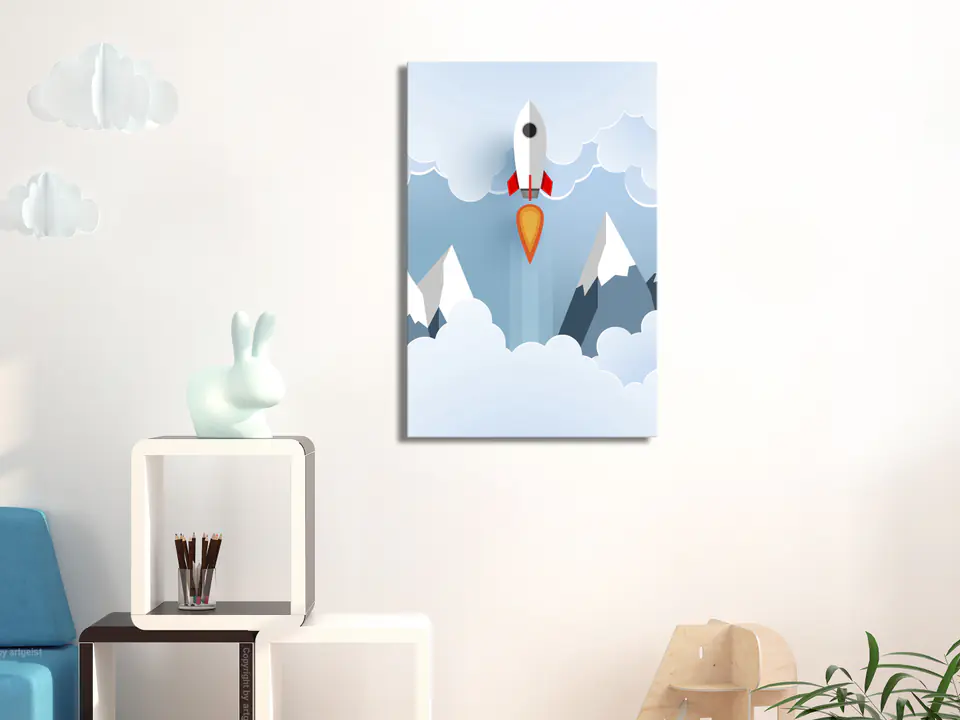 Obraz - Rakieta w chmurach (1-częściowy) pionowy rozmiar 20x30, wykończenie Premium Print