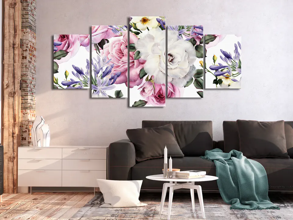 Obraz - Różana kompozycja (5-częściowy) szeroki kolorowy rozmiar 100x50, wykończenie Premium Print