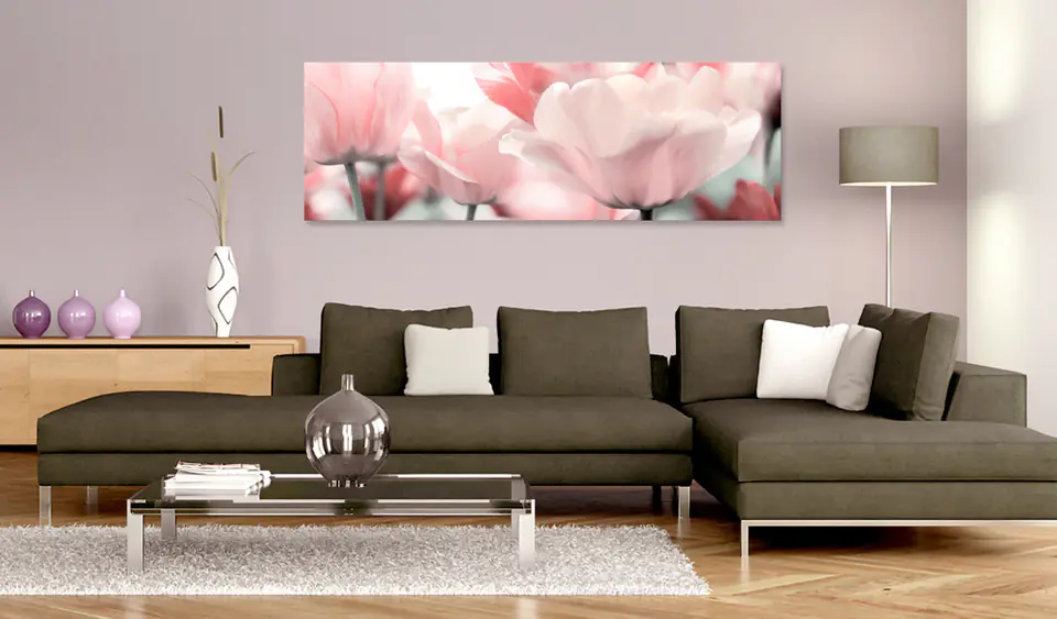Obraz - Różowe tulipany rozmiar 150x50, wykończenie Premium Print