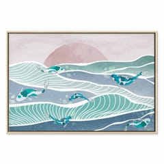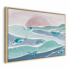 Obraz - Ryby na falach rozmiar 120x80, wykończenie W ramie drewnianej naturalnej