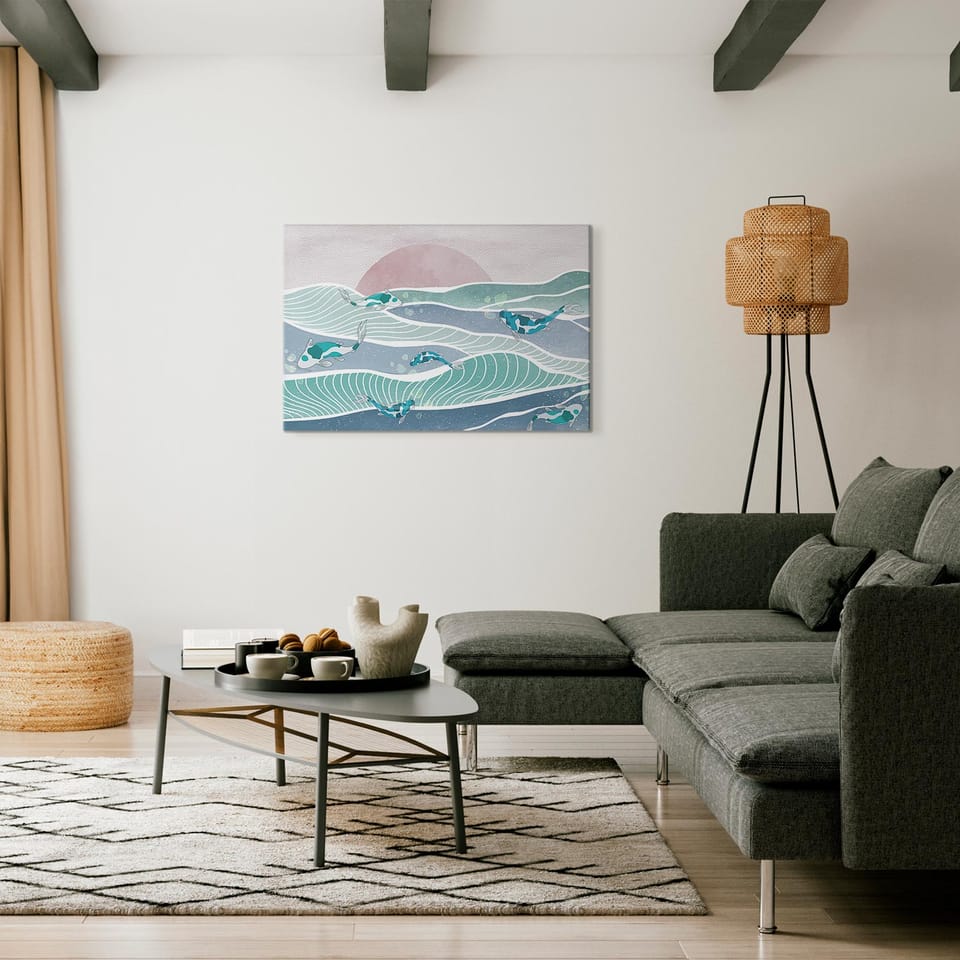 Obraz - Ryby na falach rozmiar 90x60, wykończenie Akustyczny