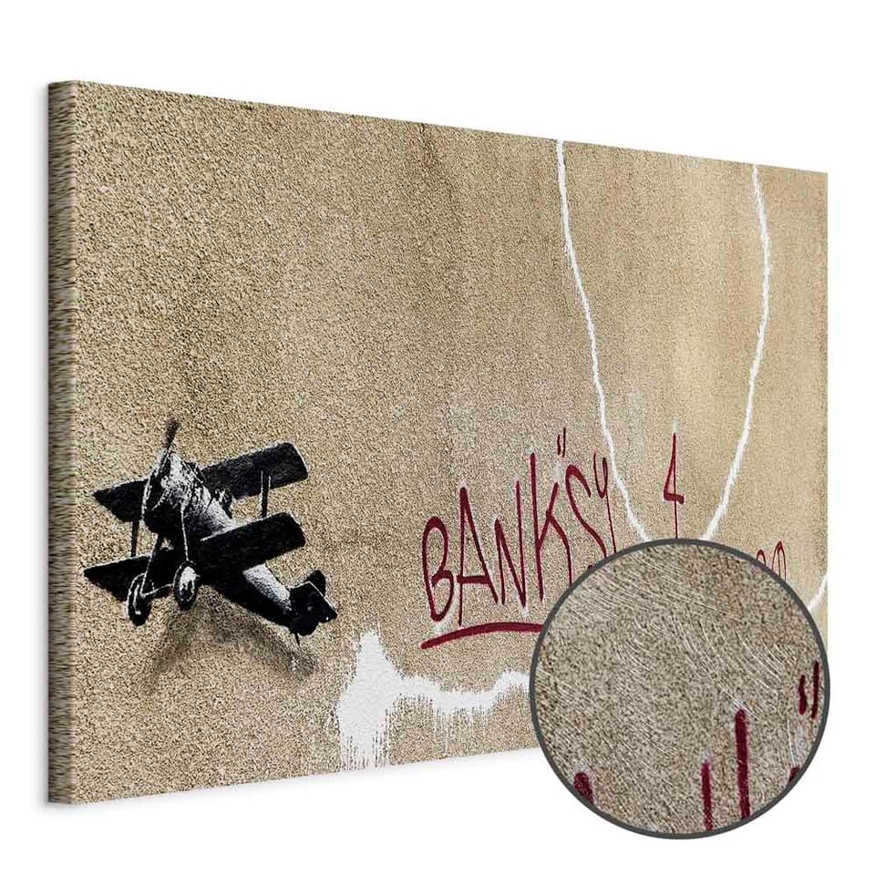 Obraz - Samolot Banksy (1-częściowy) - graffiti czerwone napisy na tle muralu rozmiar 90x60, wykończenie Premium Print