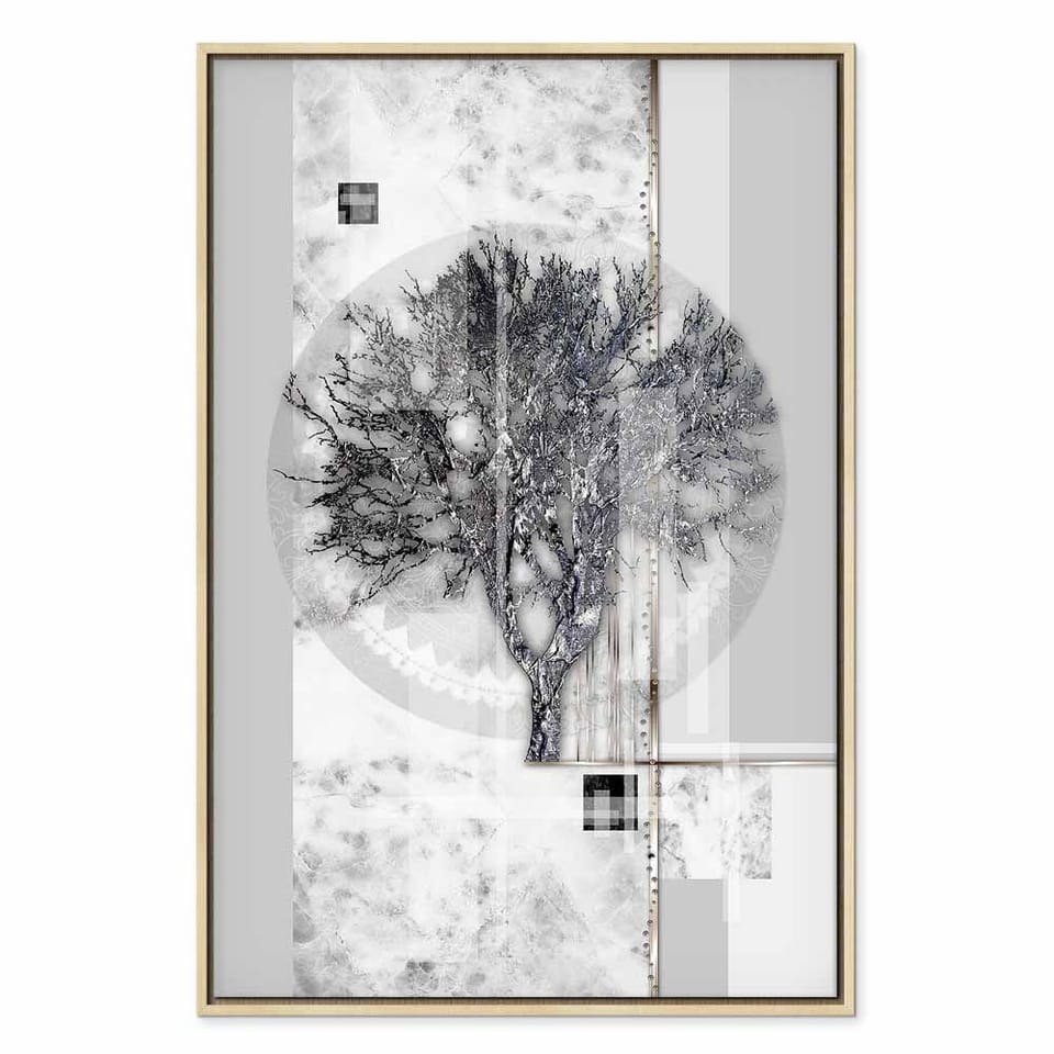 Obraz - Srebrne drzewo (1-częściowy) pionowy rozmiar 40x60, wykończenie W ramie drewnianej naturalnej