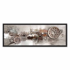 Obraz - Stalowe korby (1-częściowy) wąski rozmiar 90x30, wykończenie W ramie drewnianej czarnej