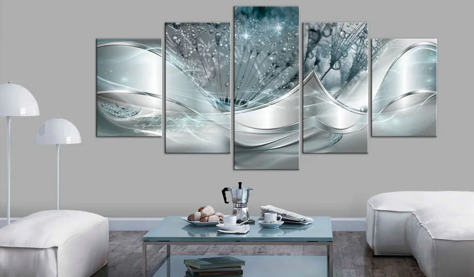 Obraz - Świecące dmuchawce (5-częściowy) niebieski szeroki rozmiar 200x100, wykończenie Na płótnie włoskim