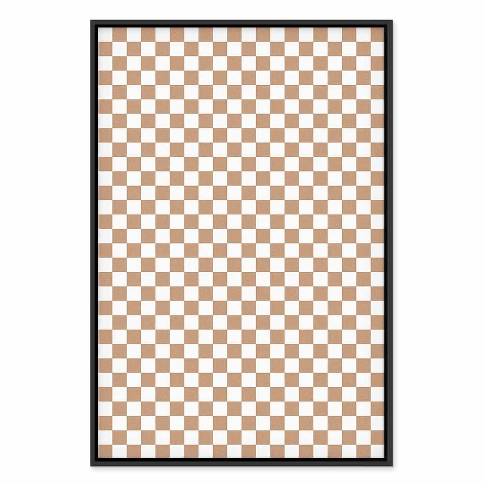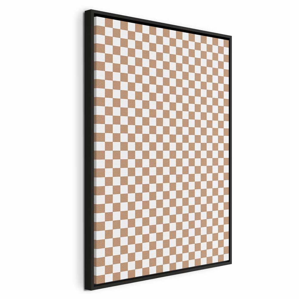 Obraz - Szachowy Wzór - brązowo-biała kratka z delikatnym szumem rozmiar 40x60, wykończenie W ramie drewnianej czarnej