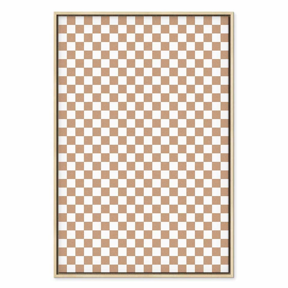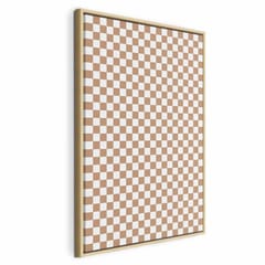 Obraz - Szachowy Wzór - brązowo-biała kratka z delikatnym szumem rozmiar 60x90, wykończenie W ramie drewnianej naturalnej