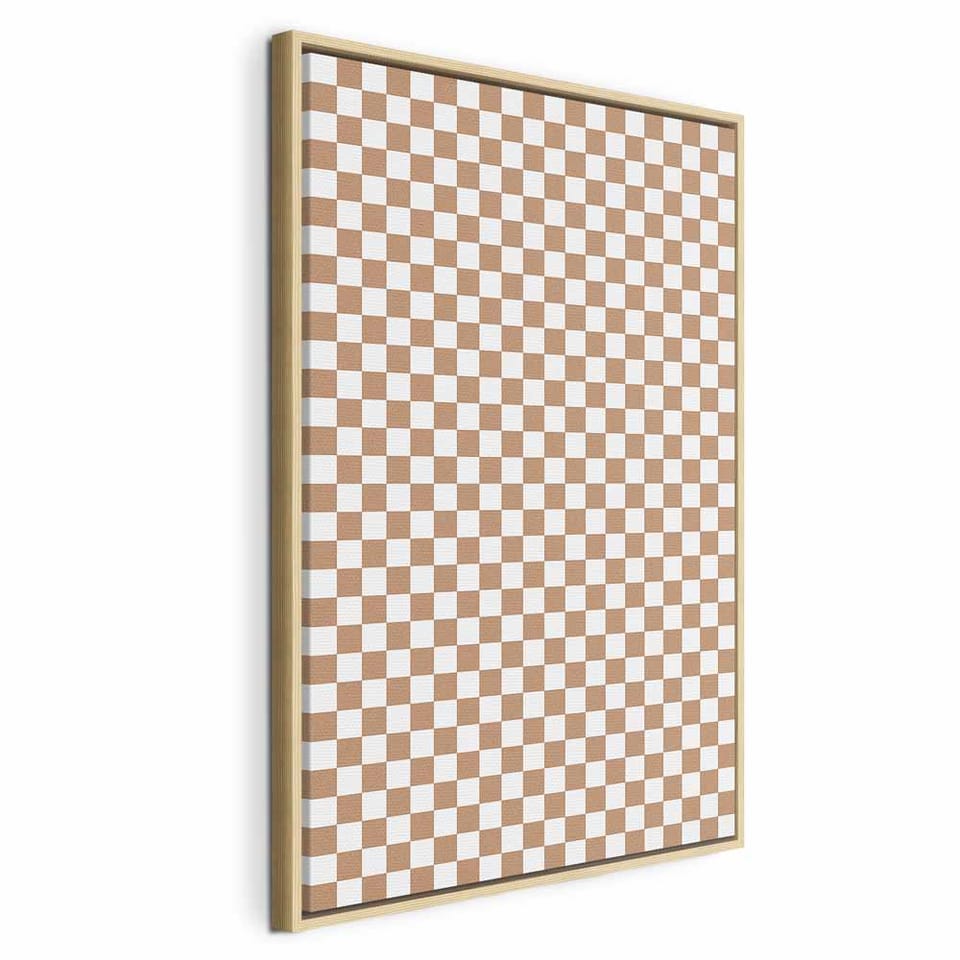 Obraz - Szachowy Wzór - brązowo-biała kratka z delikatnym szumem rozmiar 80x120, wykończenie W ramie drewnianej naturalnej