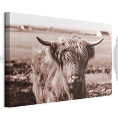 Obraz - Szkocka krowa w sepii rozmiar 120x80, wykończenie Akustyczny