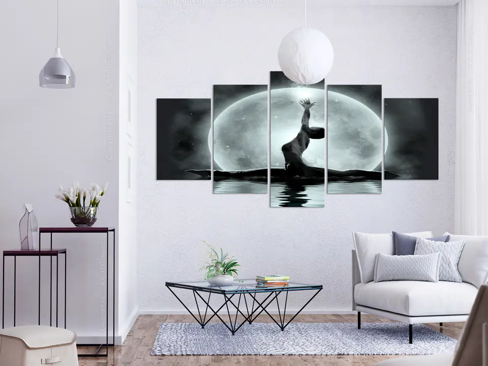 Obraz - Szpagat (5-częściowy) szeroki szary rozmiar 225x112.5, wykończenie Premium Print