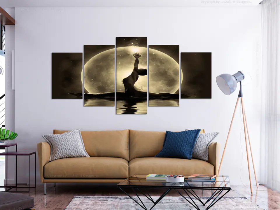 Obraz - Szpagat (5-częściowy) szeroki złoty rozmiar 100x50, wykończenie Premium Print