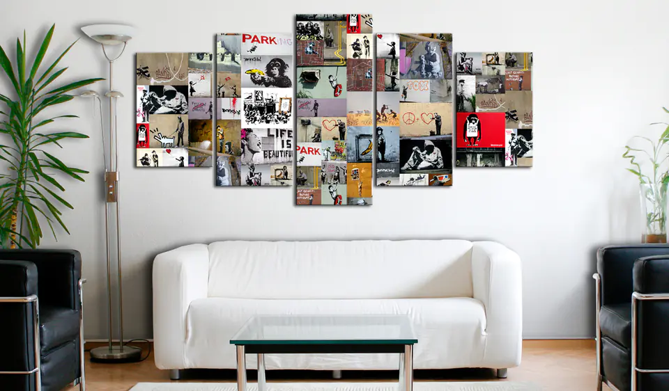Obraz - Sztuka kolażu: Banksy IV rozmiar 200x100, wykończenie Na płótnie włoskim